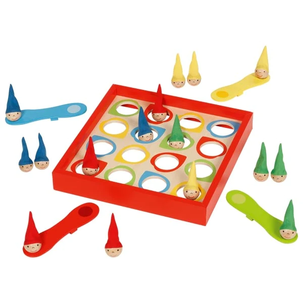 Le jeu des Lutins Sauteurs de Goki est un jeu d'adresse en bois conçu pour les enfants à partir de 4 ans. Le but est de catapulter les lutins colorés sur le plateau de jeu en visant les trous correspondants. Ce jeu stimule la coordination œil-main, la motricité fine et la concentration, tout en offrant des moments ludiques en famille ou entre amis.