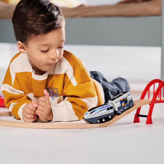 Des trains en bois classiques et modernes, conçus pour éveiller l’imagination des enfants. Reconnue pour sa qualité exceptionnelle et son design intemporel, la marque Brio offre des circuits ferroviaires, des trains à piles, des rails et des accessoires qui favorisent le jeu créatif et le développement des compétences motrices.