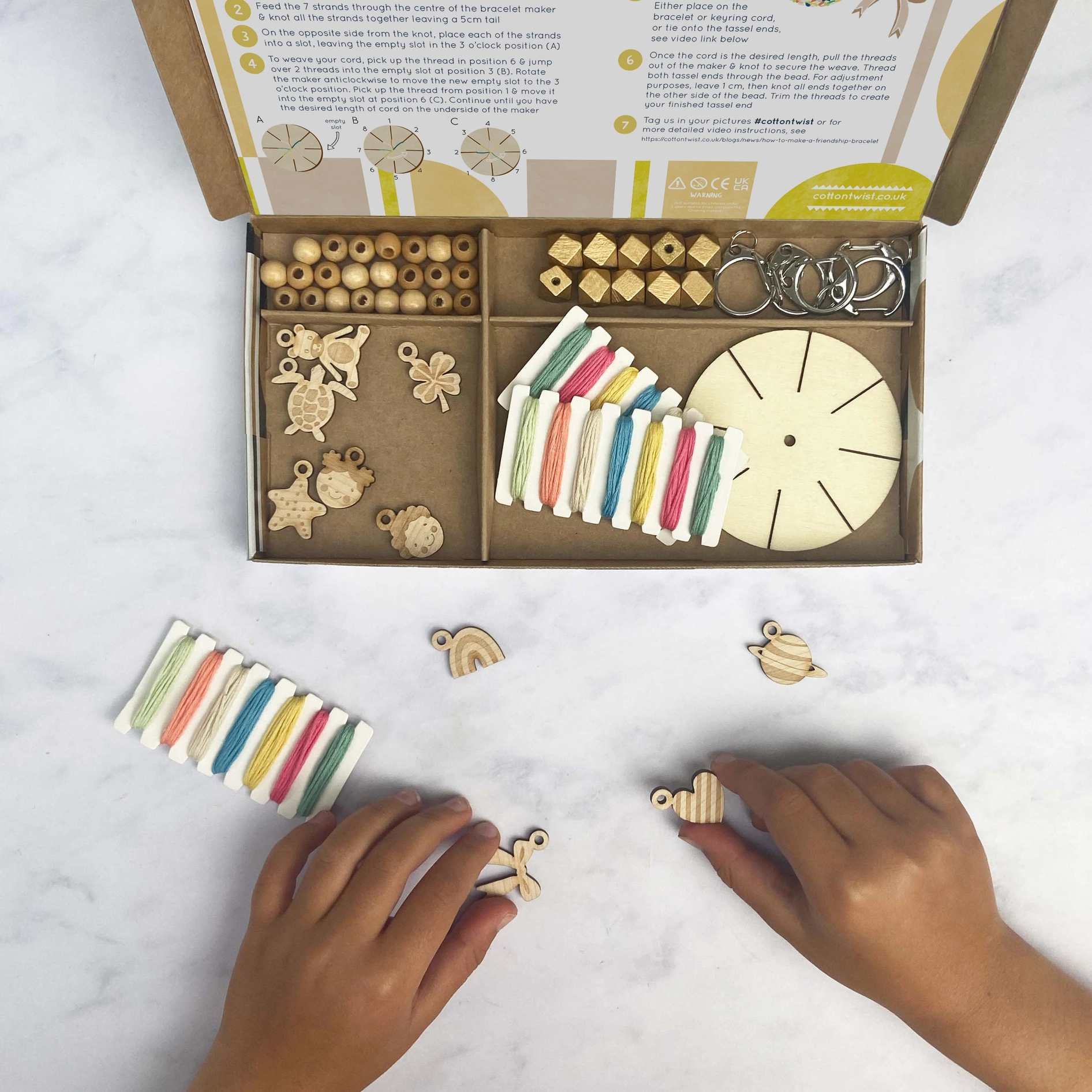 Des kits créatifs et ludiques pour enfants, conçus pour éveiller leur imagination. Cotton Twist propose des sets de bricolage, des kits de loisirs créatifs, des bijoux, et des accessoires pour fêtes uniques, parfaits pour des moments de création en famille. Fabriqués avec des matériaux de haute qualité, ces produits sont à la fois durables, sûrs et adaptés aux jeunes artistes.