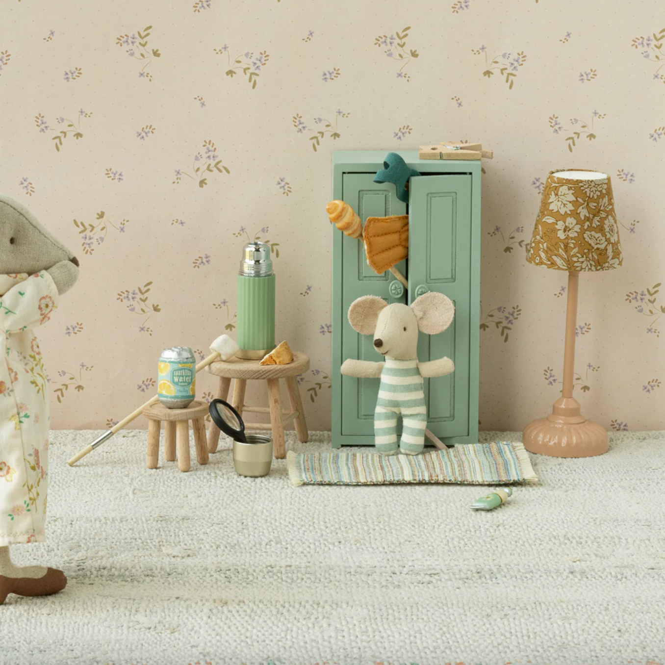Offrez à vos souris Maileg une garde-robe charmante avec cette armoire en bois bleu pâle. Parfaite pour ranger les vêtements miniatures, elle est livrée avec trois petits cintres dorés qui ajoutent une touche délicate de sophistication. Sa taille compacte permet de l’intégrer dans une maison de poupée Maileg tout en laissant assez d’espace pour jouer.