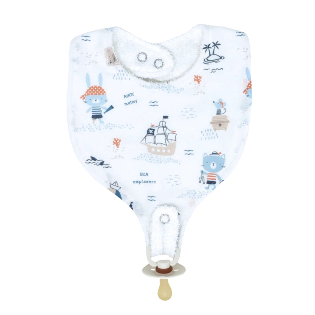 Il est conçu pour grandir avec l’enfant grâce à ses deux boutons-pression à la nuque, et possède une attache au bas qui permet de fixer un anneau de dentition ou une sucette — fini les jouets qui tombent par terre ! Résistant, pratique et lavable à la machine, il allie confort et utilité au quotidien.