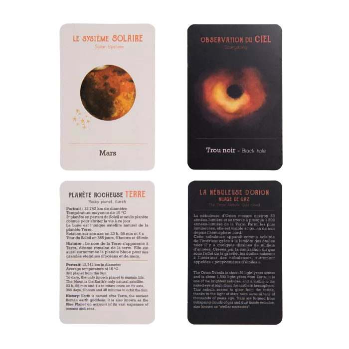 Contents: 1 activity booklet, 1 solar system poster, educational cards, elements for an interactive experience