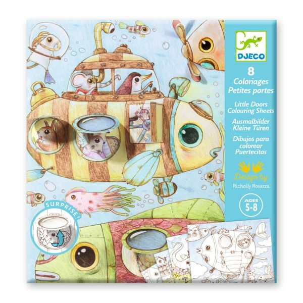 Contents: 8 double coloring cards (4 designs repeated twice). Lift-open windows and 3D cutouts for hidden surprises. A pre-colored model for inspiration.