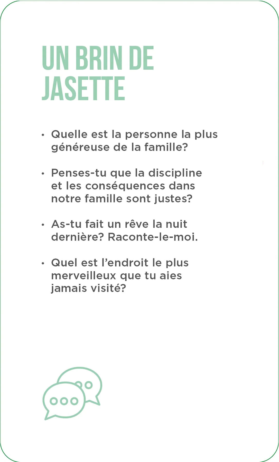 At the table, laughter and conversation flow freely thanks to this card game from Pomango's "Our Good Times" collection. Each card offers a fun activity or question to spark conversation, encourage reflection, and create genuine exchanges between young and old.