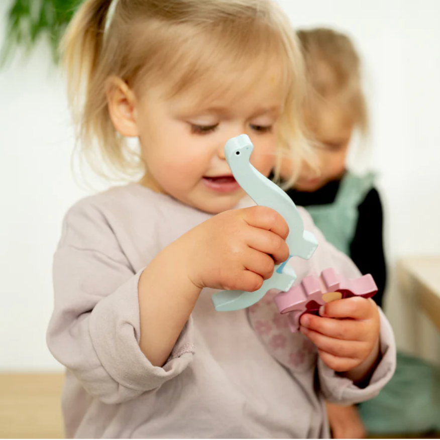Immerse your child in the fascinating world of dinosaurs with this educational set designed in Quebec by Pomango. Comprised of 8 colorful, stackable beechwood figurines, a game board, and a fabric storage bag, this set encourages free play and the development of motor and cognitive skills.
