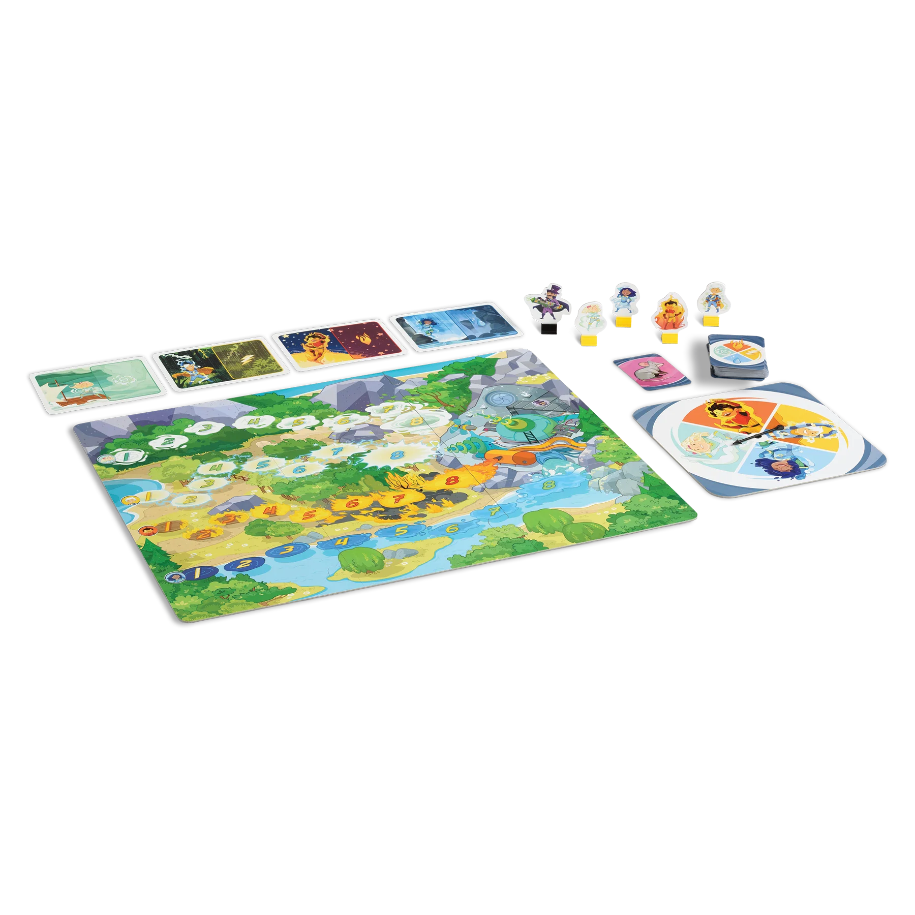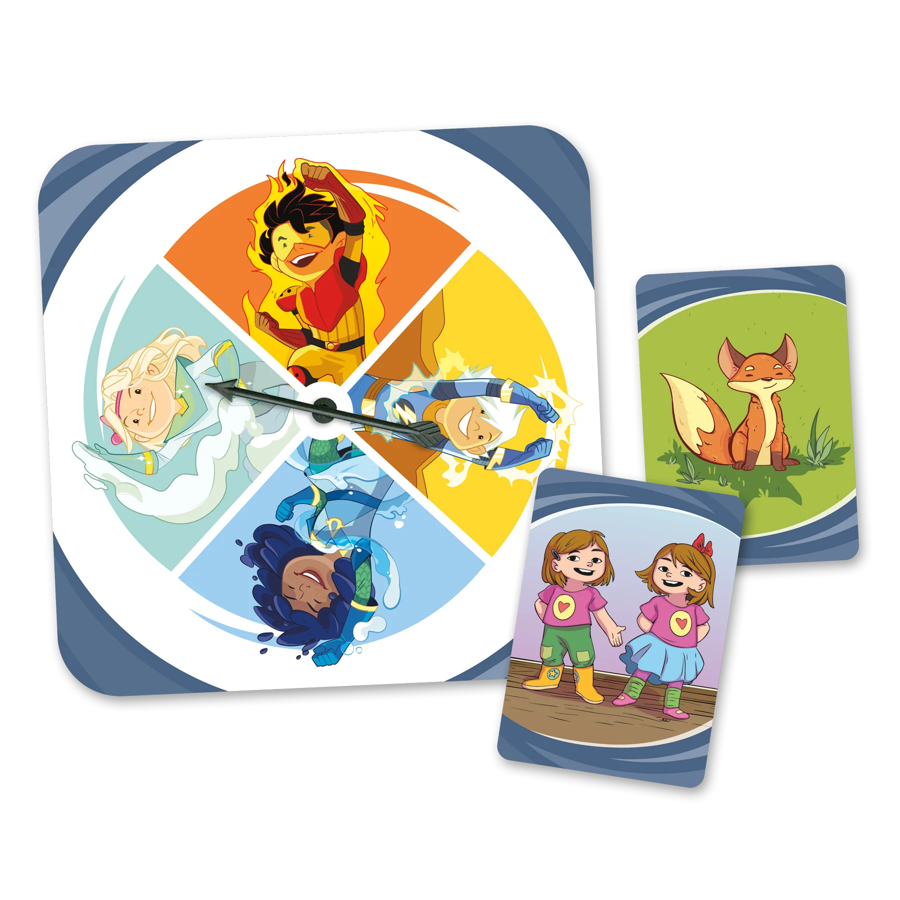 Contents: 1 game board with 9 puzzle pieces, 4 “Hero” boards, 72 word cards, 5 character pieces, 1 roulette wheel, 1 accompanying guide, Game rules
