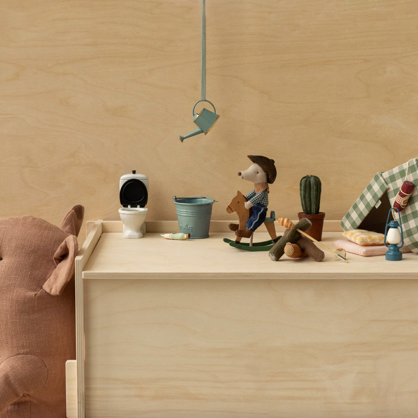 Meet Little Brother Cowboy Mouse on his Maileg rocking horse, ready to gallop into new adventures! Dressed in his cowboy hat, bandana, and jeans, he proudly rides his wooden rocking horse. Thanks to magnets hidden in his hands, he can hold the reins for a safe ride. This duo is perfect for stimulating children's imaginations and transporting them to the world of the Wild West.