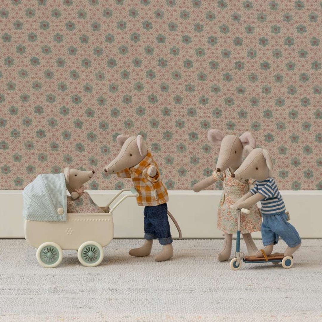 This Maileg retro pram is a little vintage gem, perfect for miniature adventures: it comes with an adorable baby mouse asleep in a cozy sleeping bag. The delicately crafted metalwork and soft hood give it a nostalgic charm, ideal for doll play or as a decorative piece.