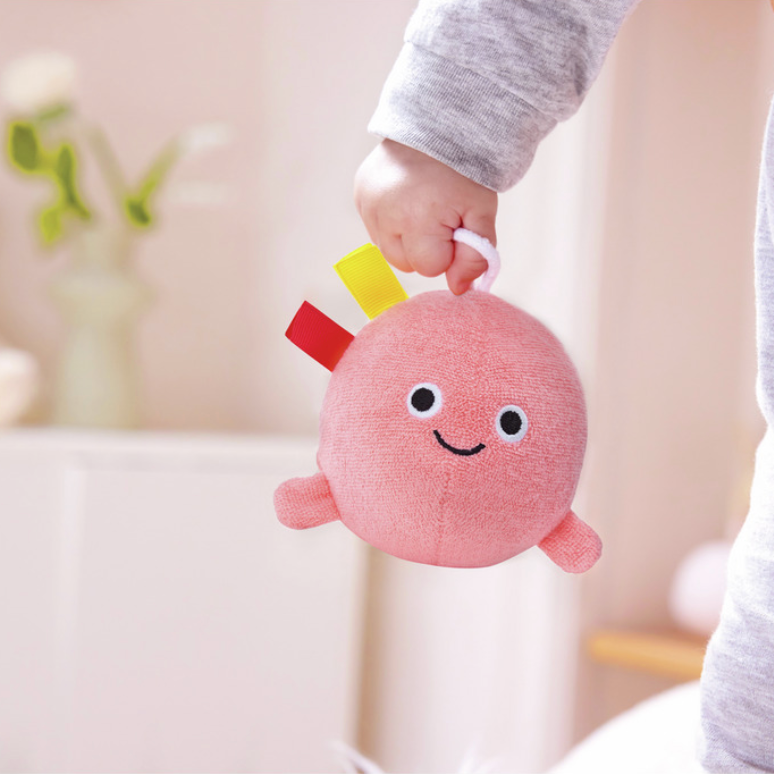 Contents: 1 pea pod with built-in mirror, 3 plush peas with various textures and sounds (crinkle paper, bell, balls)