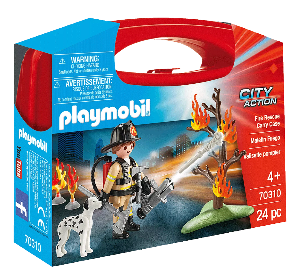 Get to work with the Playmobil Fire Rescue Carry Case, a compact and mobile set dedicated to emergency missions. Includes: a firefighter equipped with a helmet and fire extinguisher, a Dalmatian dog, flames to extinguish, axes and other accessories, all stored in a practical hard case to take the game anywhere. Ideal for developing imagination and role-playing rescue operations.