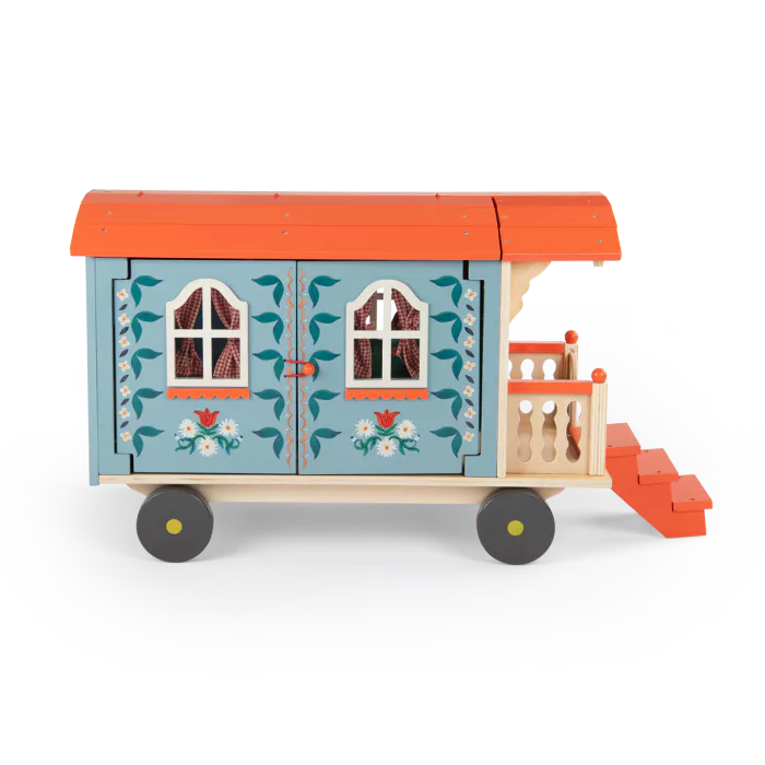 Embarquez pour des aventures magiques nomades avec la caravane en bois Les Minouchkas de Moulin Roty ! Ce magnifique jouet en bois peint aux détails fleuris est une petite maison roulante pleine de charme, idéale pour imaginer que les adorables personnages Minouchkas (ou vos peluches d'amour) se retrouvent autour d’un feu de camp, partagent des crêpes ou lisent des histoires sous les étoiles.