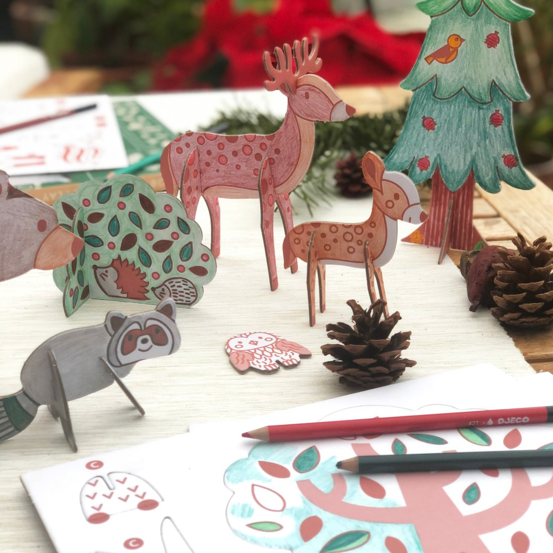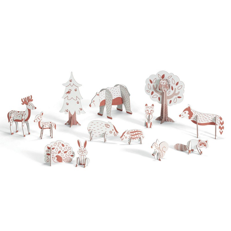 Un kit créatif avec une multitude de pièces en carton à colorier et à assembler pour réaliser des animaux et décors de la forêt. L'enfant joue avec tous les éléments créés et c'est parti pour de fabuleuses histoires !