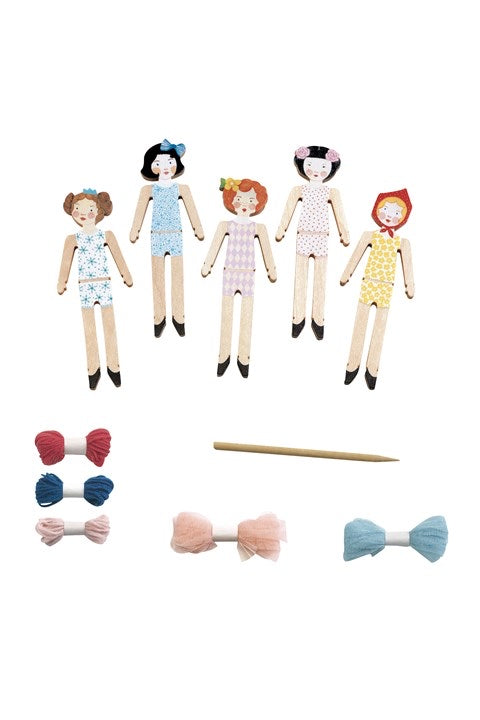 Contenu : Le coffret inclut tout le nécessaire pour créer cinq poupées, des tissus colorés, des fils, de la feutrine et des accessoires pour personnaliser chaque poupée..