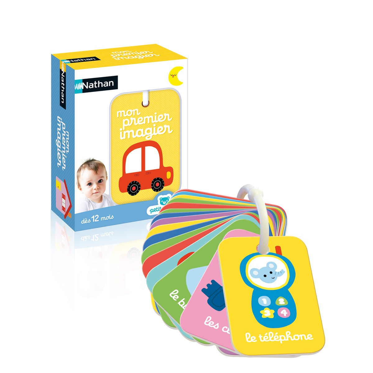 Le jeu Mon Premier Imagier de Nathan est spécialement conçu pour les enfants dès 12 mois. Il contient 20 cartes recto-verso illustrées (8 × 12 cm), reliées par un anneau en plastique, ce qui facilite la préhension et favorise une manipulation adaptée aux petites mains. Chaque carte présente un objet du quotidien clairement dessiné, permettant à l’enfant de découvrir et de nommer ses premiers mots de façon ludique et intuitive. Fabriqué en Espagne, ce jeu d’éveil stimule le langage, la mémoire visuelle, le vocabulaire et la coordination œil-main dès la maternelle. Conforme aux normes de sécurité pour les tout-petits, il encourage l’échange parent‑enfant et l’apprentissage du monde qui les entoure.