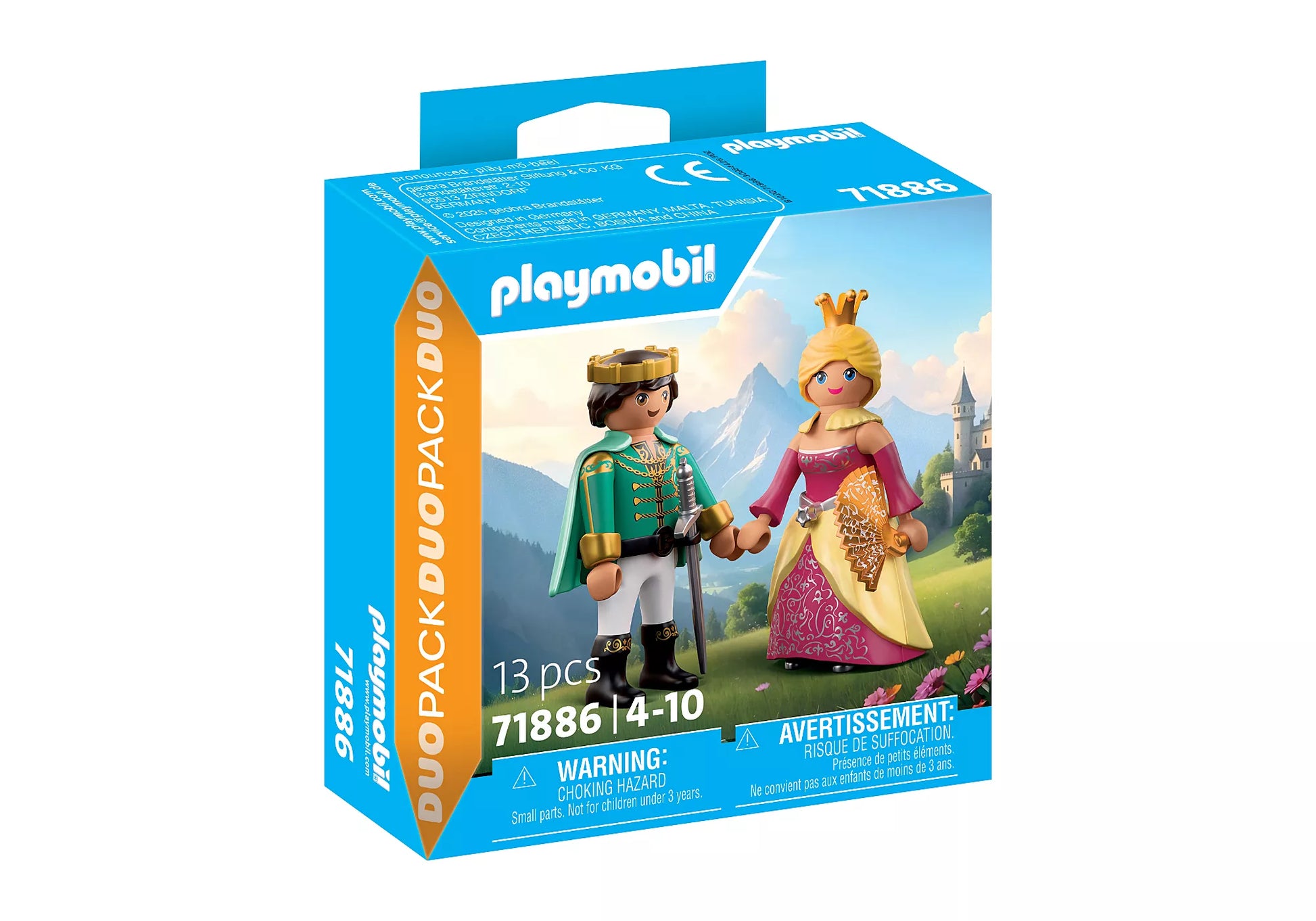 Plongez dans l'univers féerique avec le duo Pack Prince et Princesse Playmobil. Ce set comprend deux figurines articulées : un prince vêtu d'une cape et armé d'une épée, et une princesse élégante avec une jupe à cerceau amovible et un éventail. Parfait pour recréer des scènes de contes de fées, des bals royaux ou des aventures magiques.