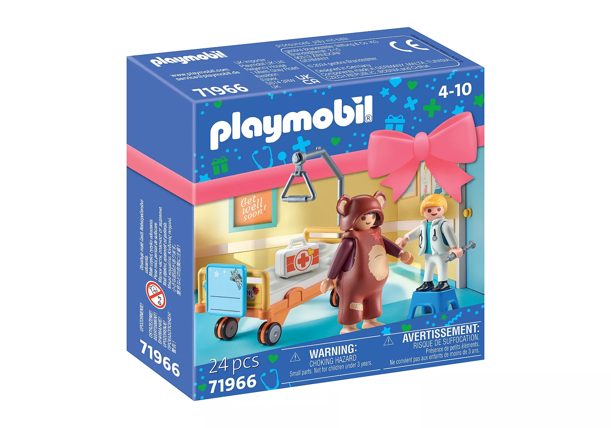 Offrez un moment de tendre complicité avec l’ensemble Bon rétablissement Playmobil. Ce set comprend un enfant patient qui prend soin d’un adulte déguisé en ours, ainsi qu’un lit d’hôpital avec tableau personnalisable. Grâce à une trousse médicale et une feuille d’autocollants avec pansements et bandages, les enfants recréent une ambiance rassurante propice au confort et à la guérison ludique. Ce coffret véhicule une histoire douce et sécurisante, idéale pour rassurer après une visite, et développe l’empathie et les jeux de rôle dès 4 ans.
